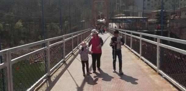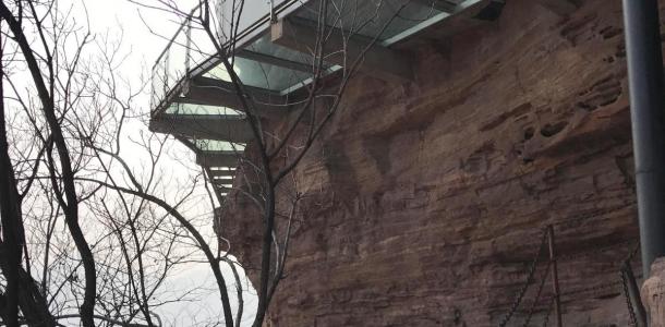奔着有特效的玻璃栈道去的京娘湖,要先爬山,可以从半山腰坐缆车到山顶的宋祖峰云中寺就到玻璃栈道了。不是很高,不知道是天冷还是人少,没有特效。