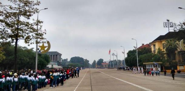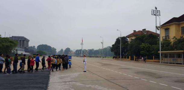 巴亭广场就在河内的市中心,是一个很大的广场,每天早上这里都有升旗仪式,广场上每天都有很多人,排队参观胡志明纪念馆,有些广场的道路有士兵把守,是不能走的,需要绕着走。