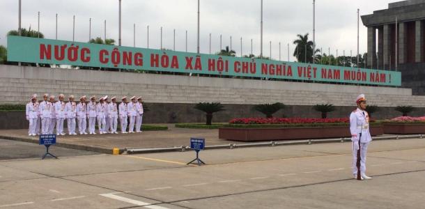 巴亭广场,越南的天安门广场,胡志明的灵寝,还是蛮壮观的,附近有文庙也接近还剑湖,可以去看看,越南民众都排队瞻仰湖志明遗体