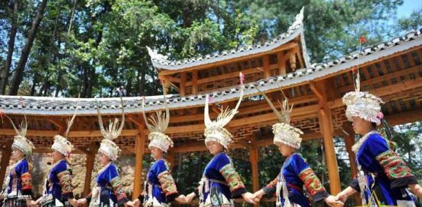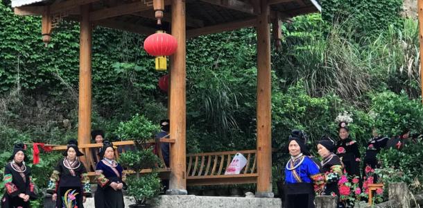 南花苗寨位于贵州凯里,苗寨的吊脚楼是依山而建的,虽然山路都是水泥路面了,但还是要爬坡,对于我们走惯平路的人还是有点喘,苗族姑娘都会载歌载舞,我们去时正好赶上苗年,说好的长桌宴却变成了圆桌宴。