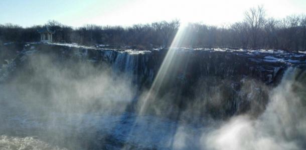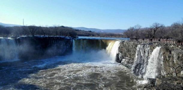冬天里镜泊湖仍然能看到壮观的大瀑布。