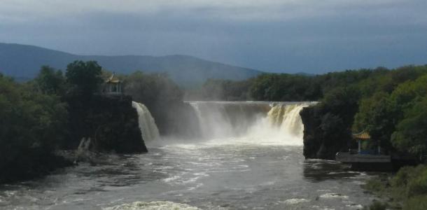 12月到镜泊湖,还没结冰,水流很大,瀑布很壮观,据说1-2月会结冰,冰瀑布应该很好看。