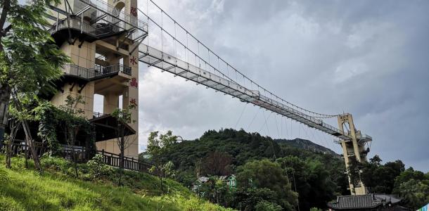 水晶桥就在客天下的风雨桥旁边的路口上去,这边可以直接开车过来售票处这边还是比较方便,但是要另外付门票,就算是酒店住户的话,也要40多块钱一个人。小孩说很好玩,下次还想去