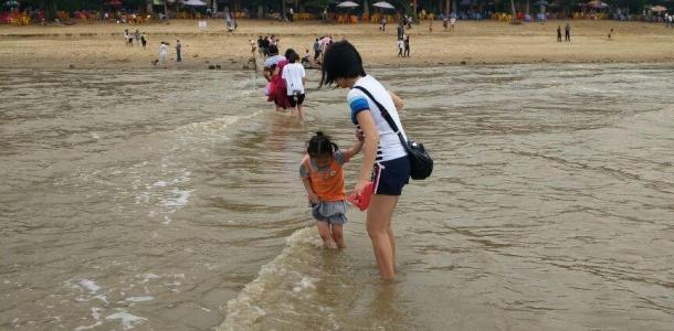 三娘湾确实不适合下水游玩,水比较浑,不像北海那么清,这里的落日洒在海面上,确实是特别好看!我们也看到了著名的三娘石,特别大的三块石头遥遥相望对着大海,个人认为是值得一游的地方!