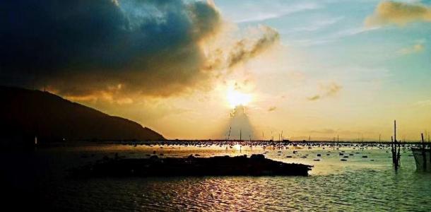 在南澳岛上看日落真的很美那时候在海上的渔船吃饭一边还看着日落,真的好美,南澳岛的沙滩很干净,海岸线也很长