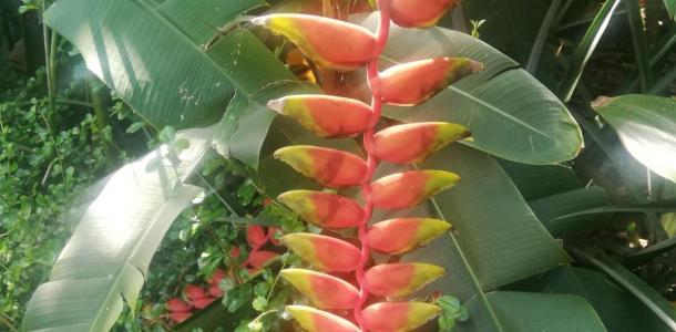 兴隆热带植物园有着最丰富的热带植物品种,很多的种植植物的母本。香蕉,菠萝,木瓜,咖啡豆。最引起好奇的是瓷玫瑰花。硕大的花朵在细细的花茎支撑下孤傲的矗立在草丛中。不需一片绿叶陪衬。