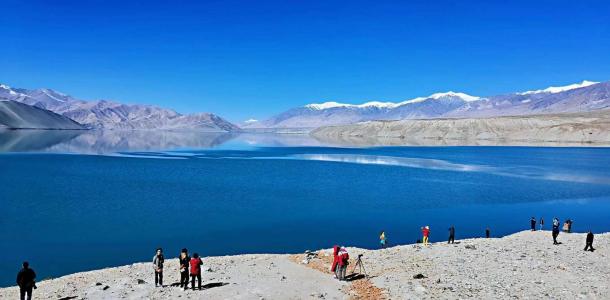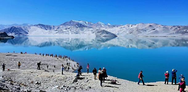 帕米尔高原最美的湖泊就在这里,在观景台上看着明镜一般的湖水,湖水旁边是沙山,再向远望是慕士格塔峰,皑皑白雪在阳光下发出刺眼的光芒。真的是景色宜人,风景如画。 喀拉库勒湖位于314国道旁边,无论是从喀什出发上帕米尔高