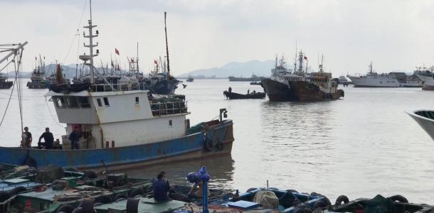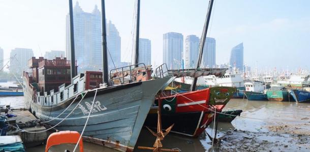 下午4点钟开始出发去沈家门。一路都有标记,到达滨港路停好车后,时间约为5点了,逛逛滨港路,看看海边的到港渔船。。。。