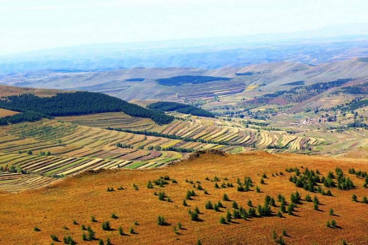 梯田是北方不多见的风光之一,如果不是草原天路,不知道还要跑多远才能看到这样的美景。夏天的颜色还只有翠绿色的单一,但依然能看得见分明的层次。秋天塞北梯田最有看头的,除了缤纷的色彩、纵横交错的线条,还有那收割后成垛、成堆、成行码放的各种庄稼。