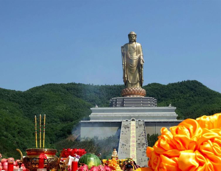 世界最高的大佛,位于河南平顶山市鲁山县的尧山中原大佛景区内,佛像高108米,连底座总高208米,佛像铸造耗用黄金108公斤、铜3300吨。鲁山县名人辈出,春秋战国时期著名的思想家墨子、南宋岳飞麾下名将牛皋皆是此地人。