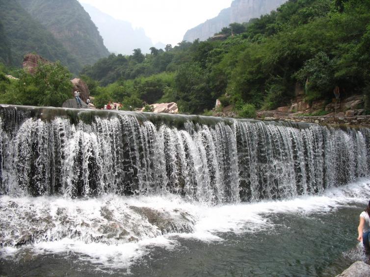 八里沟风景名胜区位于太行山南麓的深山区,景区内剑峰千仞,沟壑奇幽,飞瀑鸣涧,清泉潺流,林木葱茏,花草馥郁,猕猴嬉戏,群鹿呦呦。她是太行山水精粹所聚之地,兼有泰山之雄,其中八里沟大瀑布落差180米,一挂飞瀑,凌虚而下,咆哮奔腾,山鸣谷应,飞珠溅玉,异彩纷呈,磅礴多姿,气势恢弘,被誉为“华北第一瀑”。红石河源自山西,海拔1500米,故又称“太行天河”。