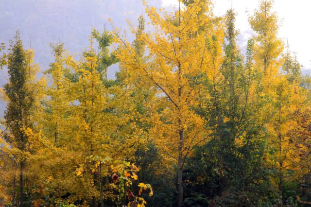 叶色逐渐由青变黄、转橙、呈红、泛紫,