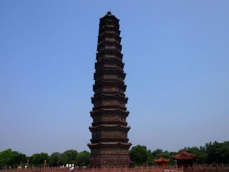 开封铁塔位于河南省开封市北门大街铁塔公园的东半部,是园内重要的文物,也是主要的景点,始建于公元1049年(北宋皇祐元年),是1961年中国首批公布的国家重点保护文物之一,素有“天下第一塔”之称。铁塔高55.88米,八角十三层,因此地曾为开宝寺,又称“开宝寺塔”,又因遍体通彻褐色琉璃砖,混似铁铸,从元代起民间称其为“铁塔”,在900多年中,历经了37次地震,18次大风,15次水患,而巍然屹立。