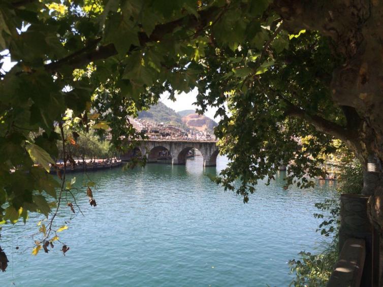 镇远古镇位于舞阳河畔,四周皆山,古镇中河水蜿蜒,以“S”形穿城而过,北岸为旧府城,南岸为旧卫城,远观颇似太极图。