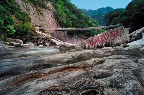 位于金寨县燕子河镇的燕子河大峡谷,峡谷全长约 3800 米,以四奇(奇坑、奇柳、奇瀑、奇洞)、五趣(趣石、趣潭、趣滩、趣谷、趣峡)而著称。