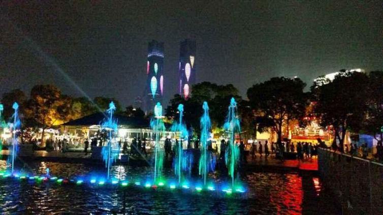 秋水广场,位于江西省南昌市红谷滩新区的赣江之滨,紧邻行政中心广场。是利用荒滩兴建,既防洪,又观景,与滕王阁隔江相望,喷水池面积1.2万平方米,主喷高度达128米,是南昌市一靓丽景观。记得要晚上去,顺便品尝一下赣江烤鱼。