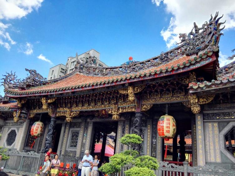 龙山寺是著名的台湾古迹,亦称“万华龙山寺”或简称“龙山寺”,与台北101、国立故宫博物院、中正纪念堂并列为台北旅游之四大胜地。龙山寺主祀的神明是观世音菩萨,在建筑上为独具特色的中国古典三进四合院传统宫殿式建筑。寺内有各式石雕艺术作品。全寺屋顶脊带装饰以彩色玻璃瓷片剪粘和交趾陶,色彩瑰丽,堪称台湾特有剪粘艺术之精华。另外龙山寺是参拜包括佛、道、儒三教重要神祇,是台北香火最旺的寺庙,共有神祇百余尊,7个香炉,让你可以选择你所信仰的神祇,自由参拜。