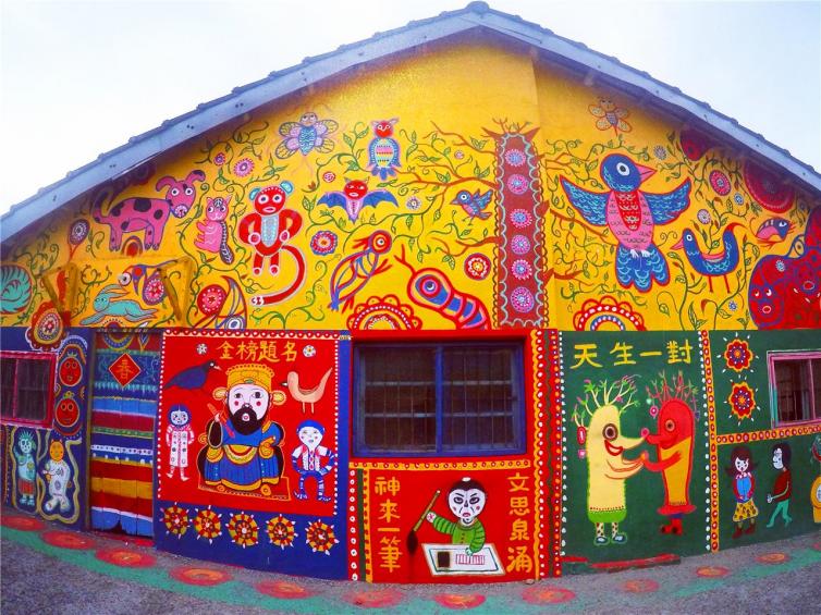 原本是一处普通的眷村社区,现在已经成为全是彩画的台中必去观光景点之一。起初因为一位退伍老兵,兴趣在自己的屋内墙壁上用水泥漆随意作画,笔法充满童稚的拙趣,极富个人特色。慢慢地,老人越画越顺手,逐渐由屋内画到屋外,不久就把破旧的眷村变成了绚烂多彩的童话世界。
