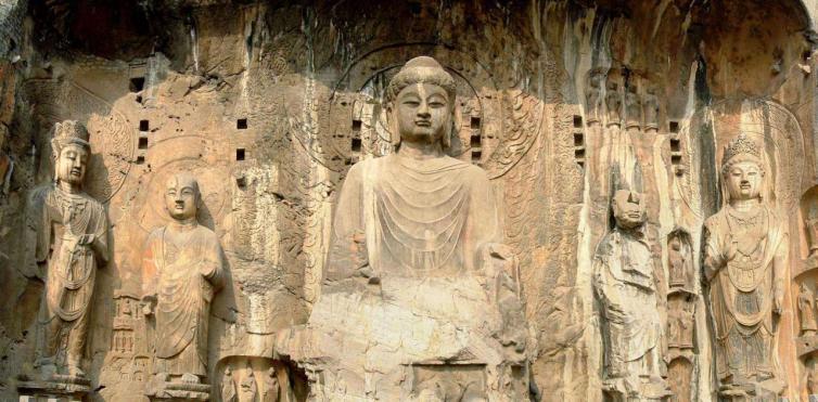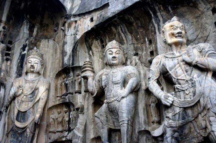龙门石窟是中国四大石窟之一,被称作佛教艺术宝库。全山造像11万余尊,最大的佛像卢舍那大佛,通高17.14米,头高4米,耳长1.9米;最小的佛像在莲花洞中,每个只有2厘米。