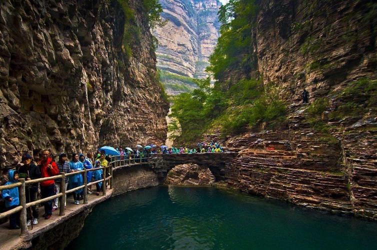 绵延40多公里的太行大峡谷,刀削斧劈的悬崖,千奇百态的山石,甘甜可口的清泉,如练似银的瀑布,碧波荡漾的深潭,引人入胜的溶洞,遍布群山的林海尽在峰峦涧壑之中。