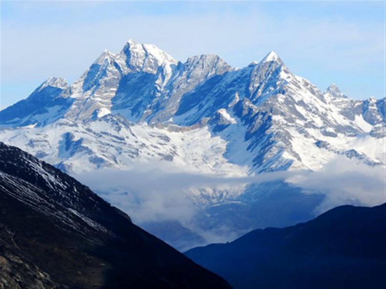 巴郎山最高海拨5040米,山峰峭壁磷峋、陡峭异常,顶峰有积雪,被白色的云雾笼罩,低处的高山草甸像绿毯覆盖山间,野花漫山遍野地铺开,景色非常美丽壮观。