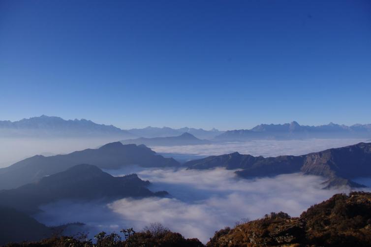 及顶,极目处一排雪山伫立在云海边际,一时间云动山舞,亦幻亦实。俗说牛背归来不看云,如此奇丽瑰美的人间绝景,趁还没被开发前一定要去一次!