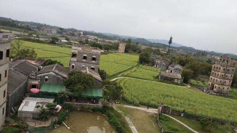 侨乡小县城里隐藏着骑楼碉楼文化,说起骑楼,大家都会想到广州的上下九,殊不知,开平赤坎镇的骑楼却更成规模更具特色。沧桑厚重的鹅卵石街、斑驳镂空的窗花、精雕雅制的灰塑,形成了古镇独有的面貌。而自力村更是有众多碉楼、民庐伫立在油菜花田之中,村庄与农田和谐交融,水塘、荷塘、草地、稻田散落其间,还有一大片的油菜花田。