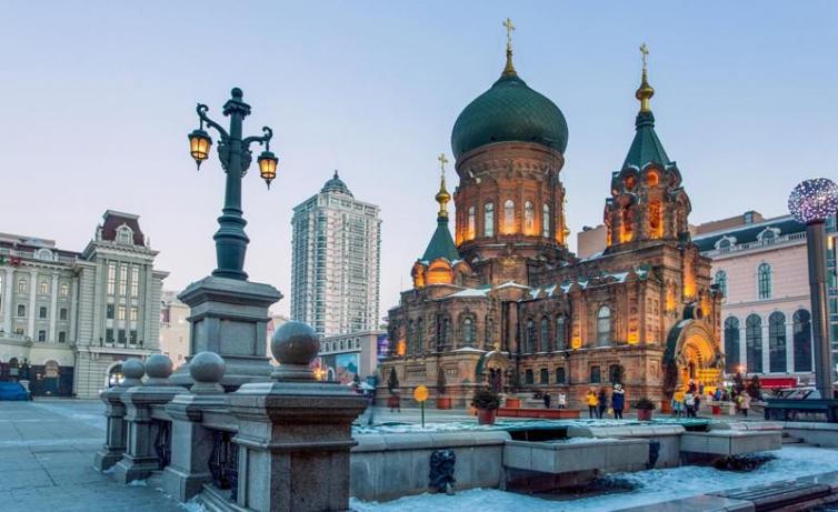 始建于1907年的圣索菲亚大教堂是哈尔滨的地标性建筑,它那绿色的洋葱头式大穹顶十分引人注目,这座宏伟的拜占庭式建筑虽然已不再具有教堂的功能,但作为哈尔滨最漂亮的异域风格建筑,它仍吸引着众人慕名前来参观。圣索菲亚大教堂曾经是远东地区最大的东正教堂,目前是中国保存最完整的拜占庭式建筑,虽然在1997年就更名为“哈尔滨市建筑艺术馆”,但是无论当地人,还是外地游客,更愿意称它为“索菲亚大教堂”。