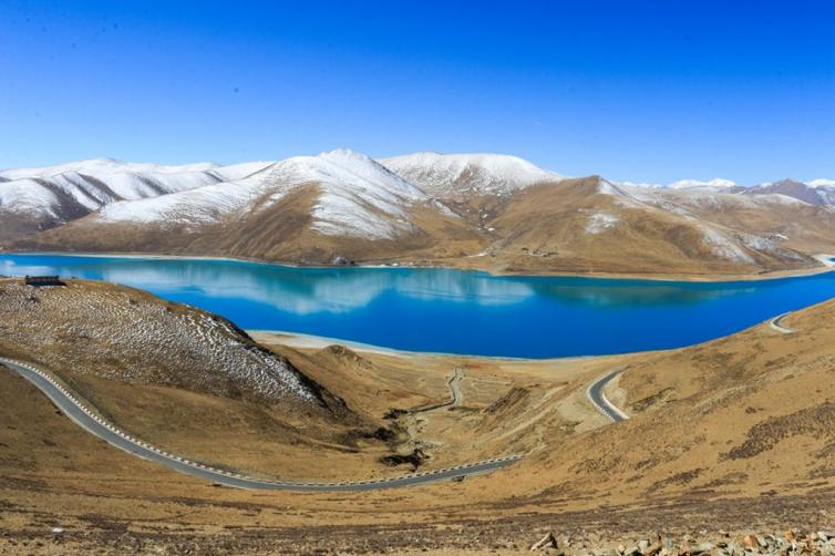 羊卓雍措远观比近触要漂亮许多,翻越5030米的岗巴拉山口后,沿公路一直向下到羊湖湖畔需要大约30分钟,这一路是欣赏羊卓雍措的最佳角度,一路上有多个观景平台,可驻足停留拍照。