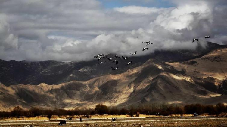 3月,拉萨的林周县正是观黑颈鹤的好地方。林周县的卡孜乡每年11月入冬后都有大批黑颈鹤迁徙到此过冬,田野间处处可见大群的黑颈鹤和其他鸟类。位置:拉萨市,林周县