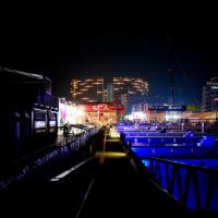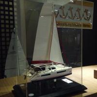 早就听说三亚的半山半岛帆船出海的景色很漂亮,只是作为私家游艇的停放地,一般是不对外开放的,这样的好机会当然不能错过。 来的比较晚,去体验大厅玩了很多互动游戏,然后来看看这里摆放的各国比赛帆船,就是不知道为什么要摆那么高。