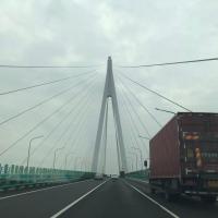 从乌镇到舟山岛的旅途特地选择从杭州湾跨海大桥通过,好一睹风采。路过时能见度不高,在20多公里的行程中,窗外海天一色。由于错过中途停靠点入口,所以没能仔细观赏大桥英姿。比选一下,从杭州湾大桥比陆路要贵50元左右。