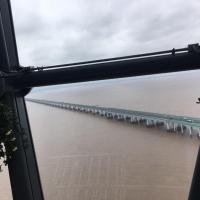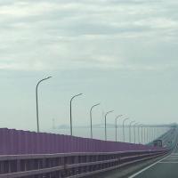 杭州湾跨海大桥修好后出差方便很多,第一次过的时候注意到了护栏的颜色变化,从蓝到黄到红,后来带客户到了海天一洲,但是没上观景台,结果什么景色都没拍到,只有浑浊的海水。以前从上海到宁波必定要走沪杭甬高速经过杭州