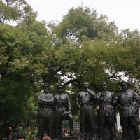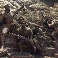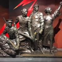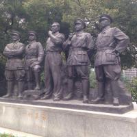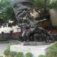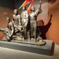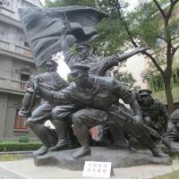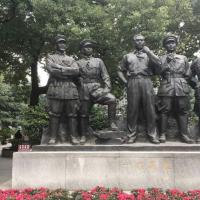 八一起义纪念馆需排队进馆,大概排了十五分钟左右。 纪念馆是免费的,凭身份证领票即可进馆参观。进入馆区,首先引入眼帘的是铜雕,它的右侧的灰色建筑是旧馆,南昌起义总指挥部旧址,铜雕正后方为陈列大楼。