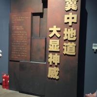 冉庄地道战纪念馆虽然离冉庄很近,但这还是第一次来参观冉庄地道,我们去正定玩回来路上看到冉庄地道战宣传牌,于是决定来参观,用导航很顺利就找到了,村里道路展馆都修建的挺好的,看到有不少车停在马路边上,我们停在一家关门的餐馆前。我们走到展览馆,是免费参观的,进到展厅,有很多图片视频和实物展品,介绍当年冉庄地道战的英勇事迹,顺着走是现在修的地道,地道里很凉爽,里面有灯,165高的人可站直行走,其中有很多岔道,我们走一会就出来了,是一条主街,很干净,有一些小店买纪念品,大多数店铺是拍抗战纪念照的,在大钟树那看到很多人穿着军装花村装拍照,很有意思,