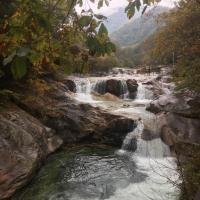 黄柏塬大箭沟,早上7点从咸阳上西宝高速,50分钟后到达长兴,从长兴下走姜眉线沿途风景非常好路况也不错,有个石头河水库很漂亮。一路上有几处60码的区间测速,天蓝空气质量好。走走停停9点开始进山,前半段路况太差了全是坑,后半程还不错,进的时候有四辆车轻微碰撞,有一辆撞在路沿上,估计报废了,坡多弯急,小心驾驶,安全第一!走走停停,沿途风景很漂亮,12点到达门口,赶紧买票进去,水是流动的,秦岭小九寨名副其实。3点半出来赶紧返程,这时好多游客才开始进山,车都排到了黄柏塬入口处估计有好几公里,不知道是晚上要住在那还是要返回,返程又见一辆车开到内侧坑里,最少两个半小时的环山路,司机真的很辛苦,建议还是做公交