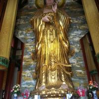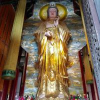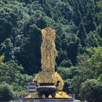 陪家人去的四川灵泉寺,可以挺大的。还能简单运动一下,上下一趟运动量也不小。据说挺灵,建筑物很雄伟壮观,内有高大的观世音塑像。山不算高,可以沿着旁边的坡路慢慢走上去,也可以坐缆车上去。