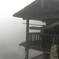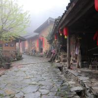 丁屋岭,一个寨门,一个无蚊叮咬的丁氏村落,一座宗祠和对面戏台,有一条不长的,叫牛气街的巷道和一个不高的了望吊脚木屋,这个可以拍戏也可以入戏的地方,有一种心情,含着雾气和樟本香,清新凉爽,纯朴无穷。