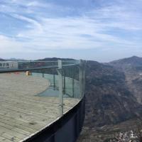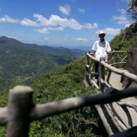 四明山地质公园景区在山顶,整体景色美,,步道设计不错,但部分区域还在维修,中间的小池塘水位太低,影响美观。 平台玻璃围栏设计好,视野开阔。