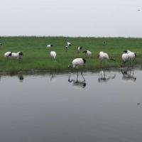 要想赶上扎龙保护区早晨第一波丹顶鹤的放飞得看运气,因为人如果多到门口做景区电瓶车坐到步行道,如果坐不上电瓶船,就需要跑步二公里,挺累的。感觉丹顶鹤在扎龙生活的很好,还是值得来感受一下人与自然的和谐。