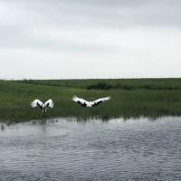 一提到扎龙自然保护区,应该首先想到的就是珍贵的动物丹顶鹤,我们去的时候还有很多,而且非常的和谐,看到他们在这里也是非常的开心,在天上飞来飞去非常的悠闲。