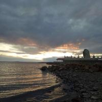 去之前在网上搜到满洲里景点第一名——呼伦湖,当地人称达赉湖。网上对达赉湖也有不少美誉,其实开发了的达赉湖已没啥特色,感觉还不如去程经过的猛犸象的故乡、公路两边的草原风光呢。不过毕竟是景点第一名嘛,不去会遗憾,去了不遗憾吧。感觉湖景一般,我们去的那天不是晴天,对景色也有影响吧。湖上有游船,湖边也有拍婚纱照的。达赉湖的全鱼宴也很有名,我们在网上搜到的达赉湖饭店午餐,50元/人的包餐,环境(正对湖区的大包间)、服务、菜品真心不错,给我们留下了很好的印象。