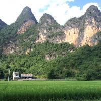 明仕田园人间美景。 晚了就不想回去了,特别是我小孩子。去过桂林山水后,你会觉得明仕田园不怎么样。主要是人文景观很多,游竹筏看山看水还是可以的。这个套票好在是2天游,所以游累了明仕,可以住德天瀑布旁,第二天一早7点半就可以进去瀑布。