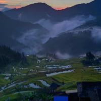 我前几天请了一个小长假来了加榜梯田,一路颠簸天已漆黑了,人也快散架了,到已预定好的山庄“田之缘”,没想到的是在大山深还有这么一家上挡次的酒店,顿时心情放松了许多,胡老板很热情的帮我们泡了一壶热茶,饱吃了一顿菜美价值的晚餐,餐后可在观景房窗台观看银河特美值!疲惫己消失啦!早晨7点钟是我最震撼的是拉开窗帘,架着长炮在观日出,看梯田爽啊!