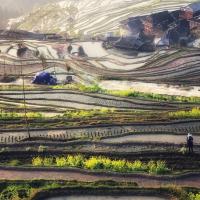 加榜梯田虽然比前两年游客多了不少,但是非节假日还是人不多。酒店也便宜些。现在四月上旬去18:15到199点是比较好的观景摄影时间。夕阳西下水田里碧波倒影很美。遇到雨后的神雾缭绕,层次分明似人间仙境;如果选在6月份去游玩,那真是摄影的天堂。