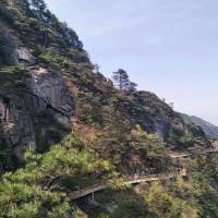 明月山景色不多,门票120元贵,缆车上行80元下行70元,上山下山必须缆车不能步行,说是防山上落石砸人,不然买个门票120元啥也看不到,唯一工程浩大也挺壮观的是青云栈道全长3千多米,悬于山壁1700多米,值得一玩,缆车价贵但落差1800米挺刺激,其余多是人造景点性价比不高。