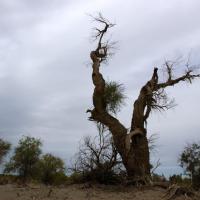 塔里木胡杨林,是新疆观赏胡杨林最佳地之一,也是世界上1200个森林公园中唯一的沙漠胡杨林公园。全世界的胡杨绝大部分生长在中国,而中国百分之九十以上的胡杨林又生长在新疆塔里木河流域。 胡杨的最佳观赏期为每年的10月至11月初,我们是7月底去的,这个时候的胡杨都还是绿色,仅有为数不多的带有一点点黄色。 胡杨,是沙漠中能够存活的几种植物之一,其它还有红柳、梭梭、沙枣等沙漠植物。