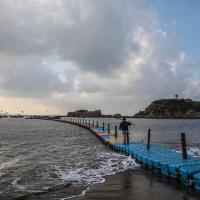去嵊泗自驾游如果住在基湖沙滩边的民宿或酒店可以向老板索要基湖沙滩优惠券,日场票能便宜10元,沙滩本身比较普通,沙子还算细腻,有免费的冲脚的地方,但是租用更衣箱和冲热水澡需要再收费,而且2岁大的小孩也要买洗澡票20元,由绳子围起来的游泳区域非常浅,只能勉强游一下,再深点的地方救生员就不让游客游出去了,水质偏黄。日场门票60元偏贵。