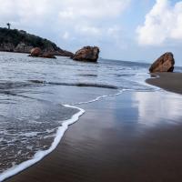 基湖沙滩是嵊泗最出名的海滨浴场,绵长的海滩沙质细腻,适合游泳、踏浪,也有卡丁车、沙滩足球、自助烧烤等娱乐项目。沙滩的沙石中有少量的沙蛤、小螃蟹等小动物,晚上打着手电筒捉蟹,是基湖沙滩的又一大乐趣。如果觉得旺季白天的门票略贵,也可以在入夜后买20元的夜场票入场,在夜风中聆听大海的浪涛声,看空中月光皎洁,有时还能遇到篝火晚会,别有一番滋味。基湖沙滩景区内有KTV和甜品店,大门附近还有一片美食区,可以吃吃海鲜烧烤。