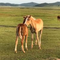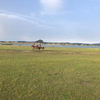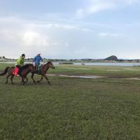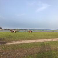 将军泡子这里是一处开阔的湿地,传说是当年康熙帝击溃葛尔丹叛军的地方,取名得自于康熙帝的舅父佟国纲将军。这里也是个骑马的好地方,夕阳西照下骑起马来很有金戈铁马、铁蹄征战的豪情。另外将军泡子这里从停车场下来步行约二十分钟,所以也可以有马、骆驼、沙滩摩托等多种选择。我们骑了下骆驼,这里的骆驼比我想象得干净得多,一点味道也没有。而且骆驼性情温顺,感觉表情都是笑眯眯的,骑骆驼拍出的照片还很有大漠风呢。